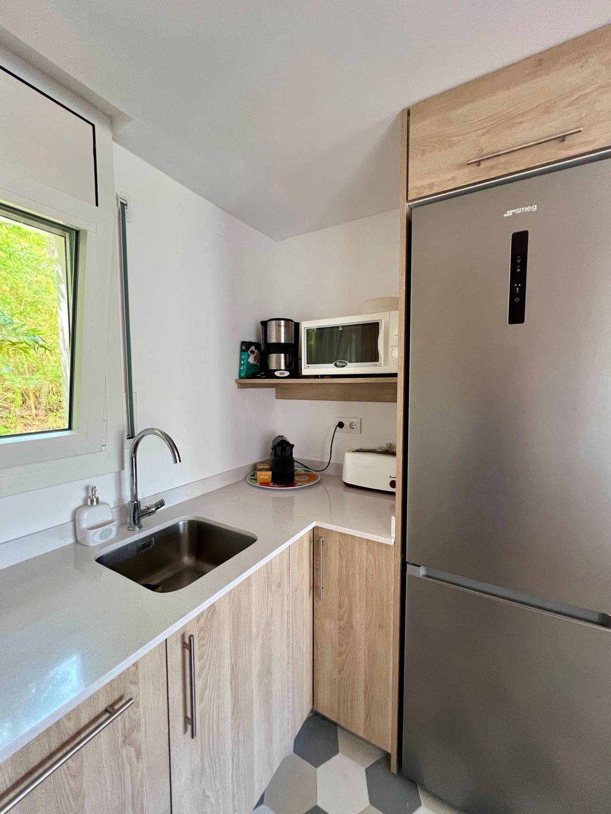 - ✓Cuisine neuve entièrement équipée — Four, plaques de cuisson, lave-vaisselle, micro-ondes, grille-pain, cafetières filtre & Nespresso, combiné réfrigérateur/congélateur.